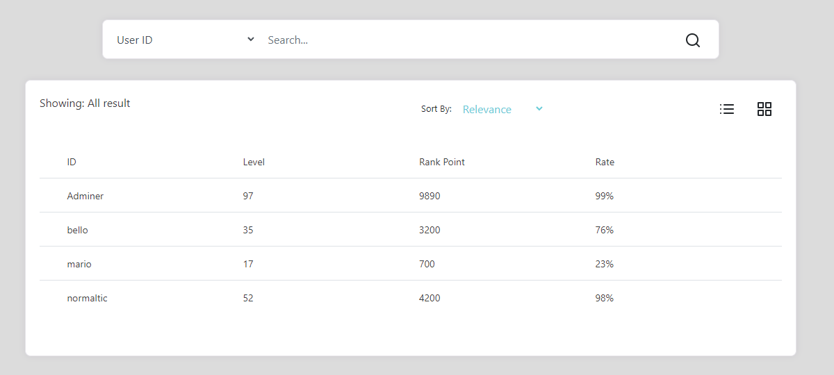 임의의 숫자 또는 문자를 넣었을 때 테이블에 저장되어 있지 않아도 결과로 뜹니다.