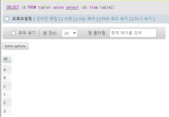 union select를 사용하려면 조건은 항상 열 개수를 맞춰줘야 합니다.